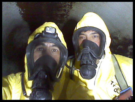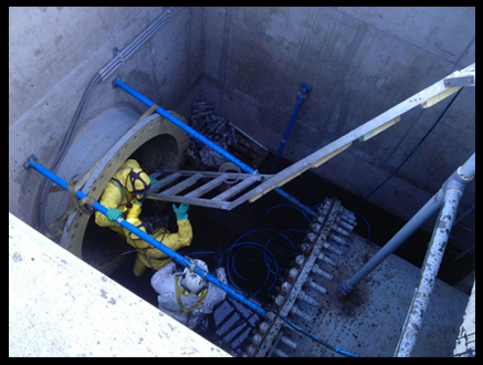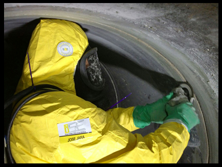 Reparación de fractura en ducto PRFV D. 1600 mm. A 80 mts al interior de este usando equipo de respiración Asistida MSA, aplicación de producto Belzona - 1831