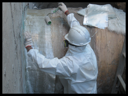 Reparación exterior , utilizando Map 300 con tela 600 gramos y resina poliéster.