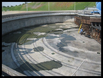 Vaciado de estanque, armado de andamios, retiro de difusores.