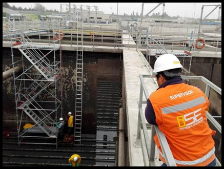 Montaje de difusores en estanques biológicos A-600 Planta La Farfana.