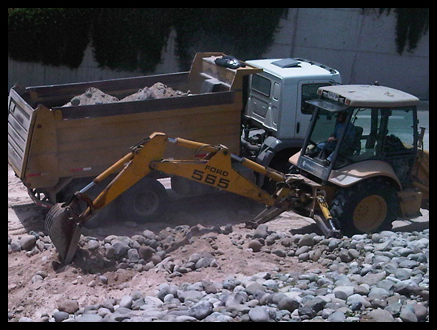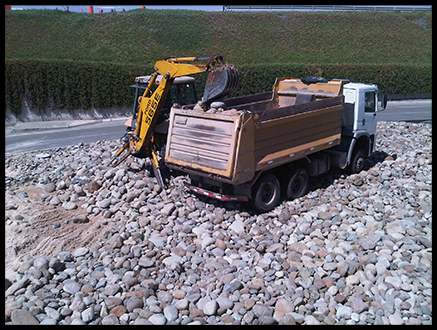 Retiro de bolones de 10 pulgadas y escarpe de terreno vegetal.