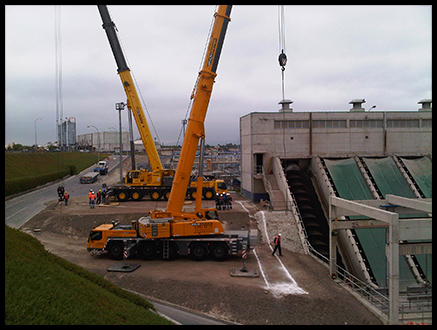 Construcción de plataforma para posicionamiento de grúa de 120 toneladas para retiro tornillo Arquímedes Planta La Farfana.