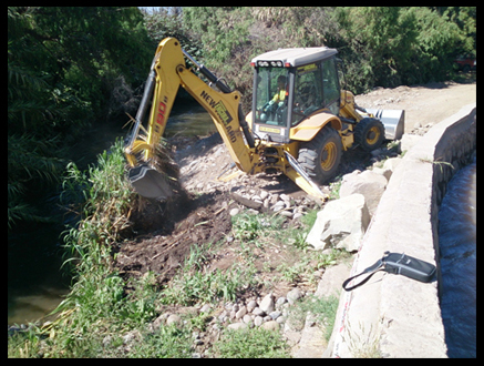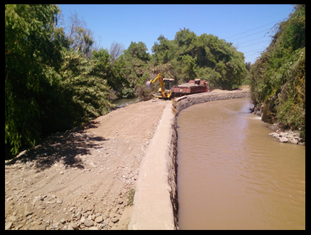 Recuperación de camino entre el afluente y canal de regadío, 4 metros de ancho.