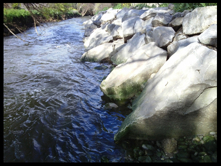Construcción defensa fluvial con rocas anguladas de 40 pulgadas aproximadamente.